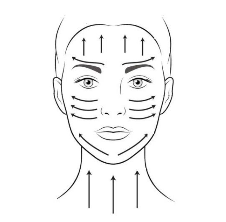 El siguiente gráfico muestra en qué direcciones podés masajear con la Gua Sha.