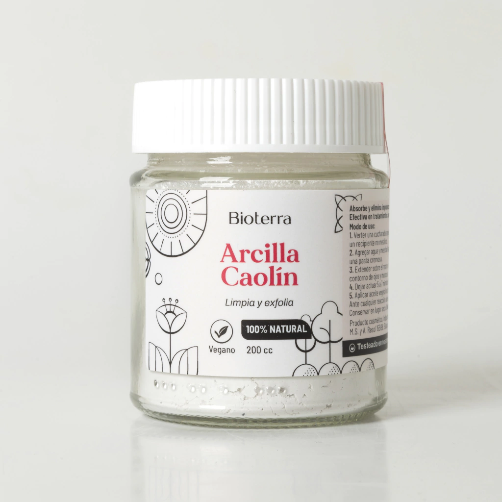 Arcilla Facial Caolín: ideal para limpiar y detoxificar la piel, absorbe impurezas y controla el brillo. Su acción suave respeta la barrera natural cutánea, dejando el rostro fresco y revitalizado.